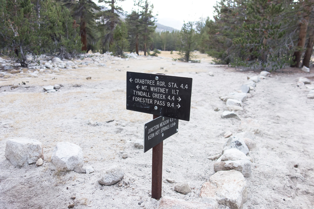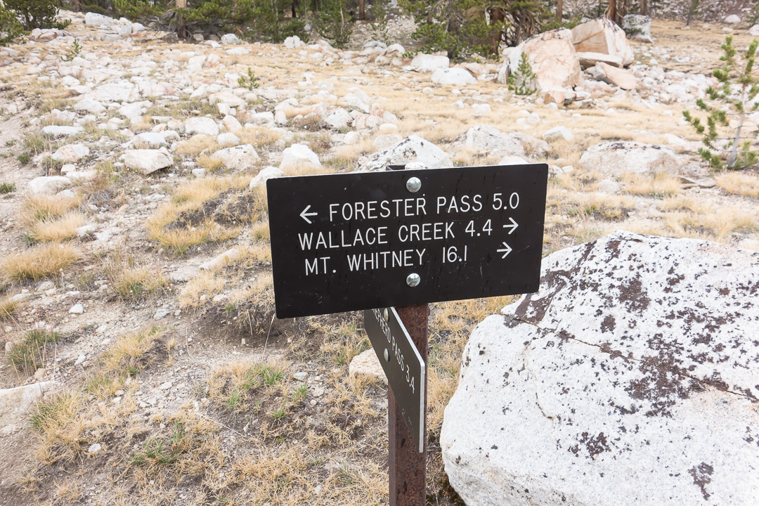An der Abzweigung geht es links hoch zum Peak und rechts runter zum Camp und nach Whitney Portal (wo uns unsere amerikanischen Freunde in Empfang nehmen wollten). An dieser Abzweigung kann man seinen Rucksack abstellen, was den Aufstieg ungemein erleichtert. Wirklich zu empfehlen!!