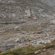 Wir überquerten eine, mit Felsen übersäte alpine Wiese und einen kleinen Quellfluss des Bubbs Creek nutzte ich um nochmal mein demoliertes Bein zu kühlen und die Wasservorräte aufzufüllen. Ein Wolkenloch ließ uns noch einmal Sonne tanken und dann ging es los. Kurze Kehren windeten sich an den letzten Grasflächen vorbei bis zu einem See. Von da ging es in Serpentinen hoch bis zum 4.008 m (13.140 ft) hohen Forester Pass.